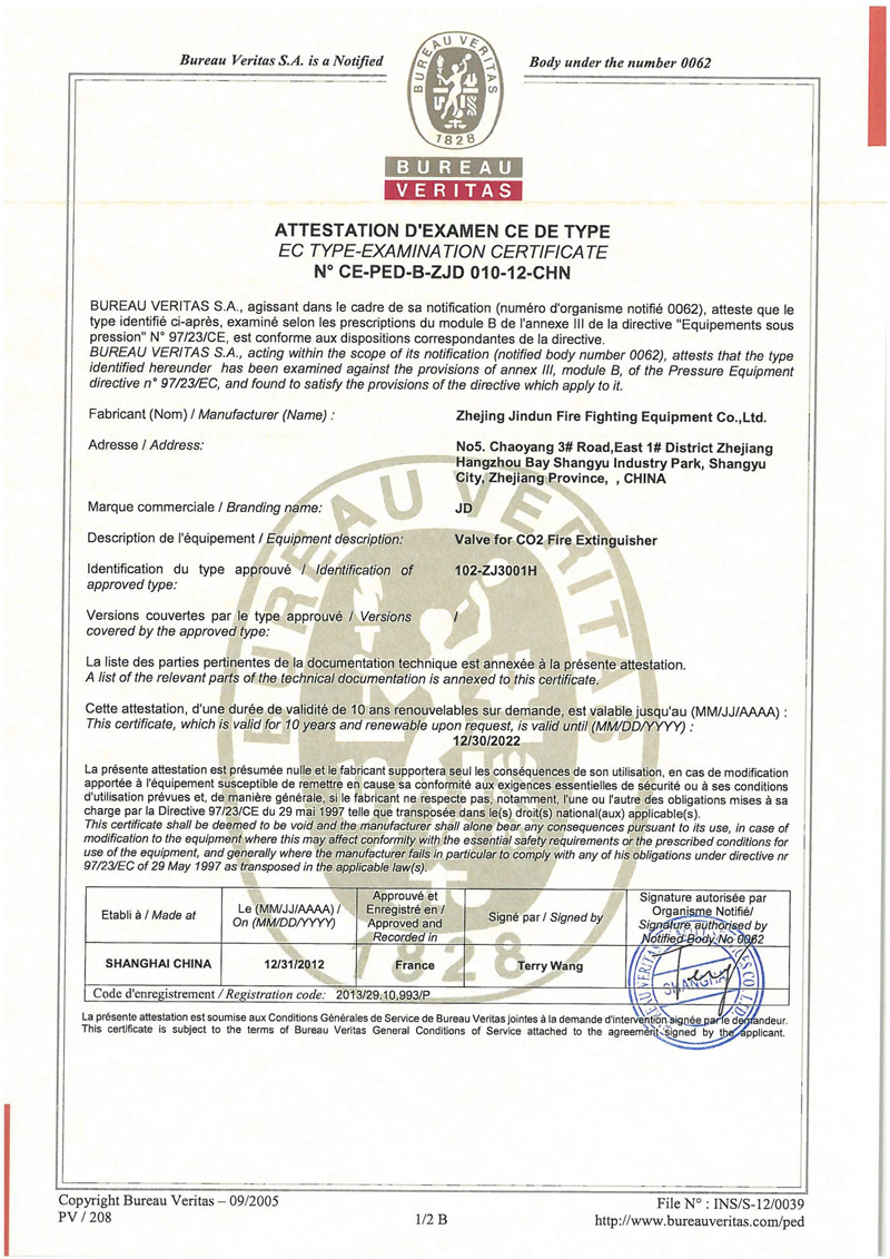 CE Certificate (Co2) CE Certificate (Dry Valve)